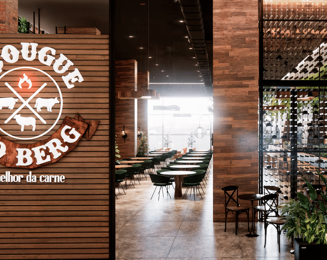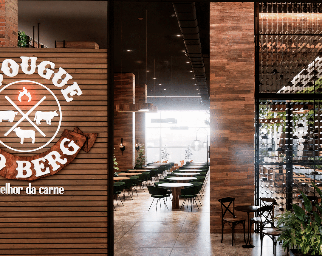 Um dos pontos altos do Açougue do Berg no Setor de Clubes são os espaços abertos, o paisagismo e a sensação de liberdade que isso transmite. Replicar esse sentimento em nossa unidade, localizada dentro de um shopping center foi um grande desafio.